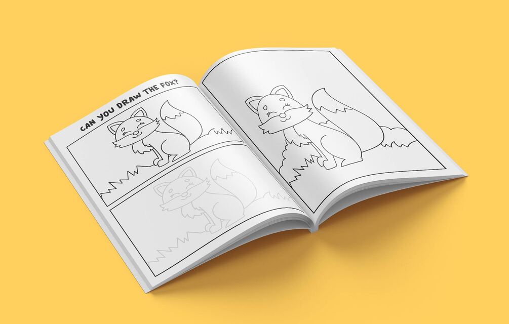 Underneath that illustration there is box where your child can learn to draw the illustration! To help them a little bit there is a very light colored outline of the cute animal. They can use it to trace it or to draw it in their own style. It's great fun and very educative if you do it together!